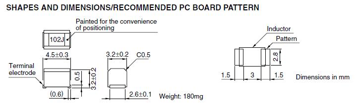 NL453232T-681J-PF features: (1)The product has good heat durability that withstands lead-free compatible reflow soldering conditions; (2)Lead-free material is used for the plating on the terminal; (3)The product uses metal terminals, which realize excellent connection reliability; (4)From 1μH to 1000μH, all of the products in the E-12 series are; (5)J(±5%) tolerance products; (6)It is a product conforming to RoHS directive.